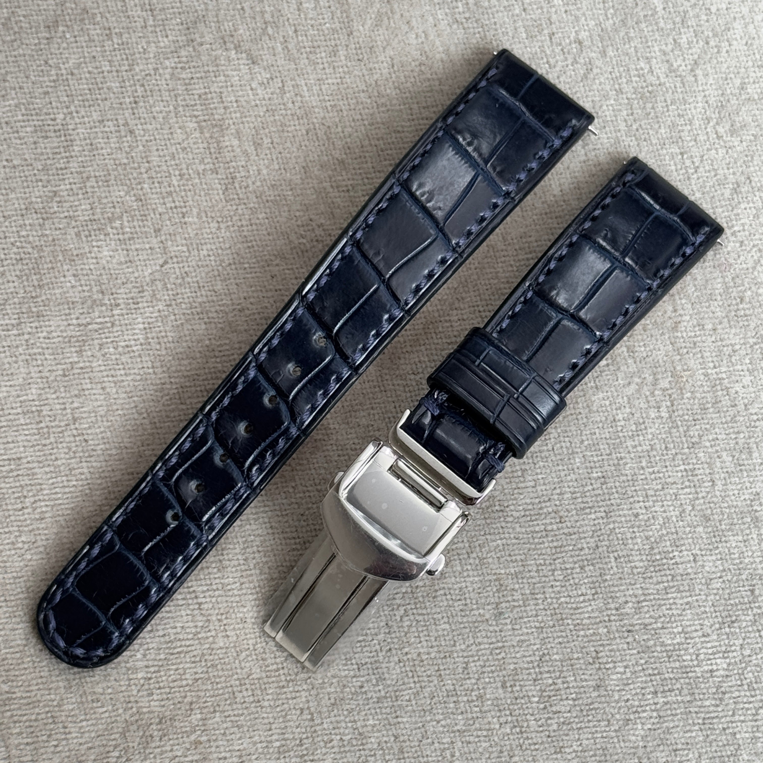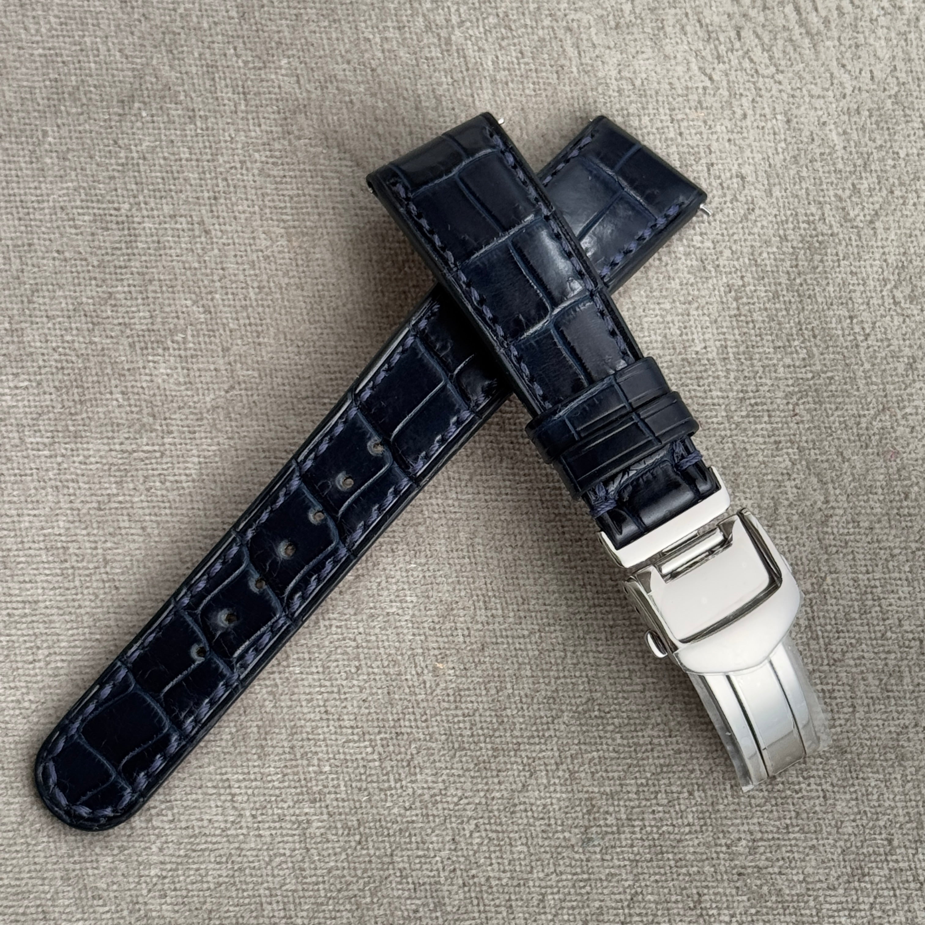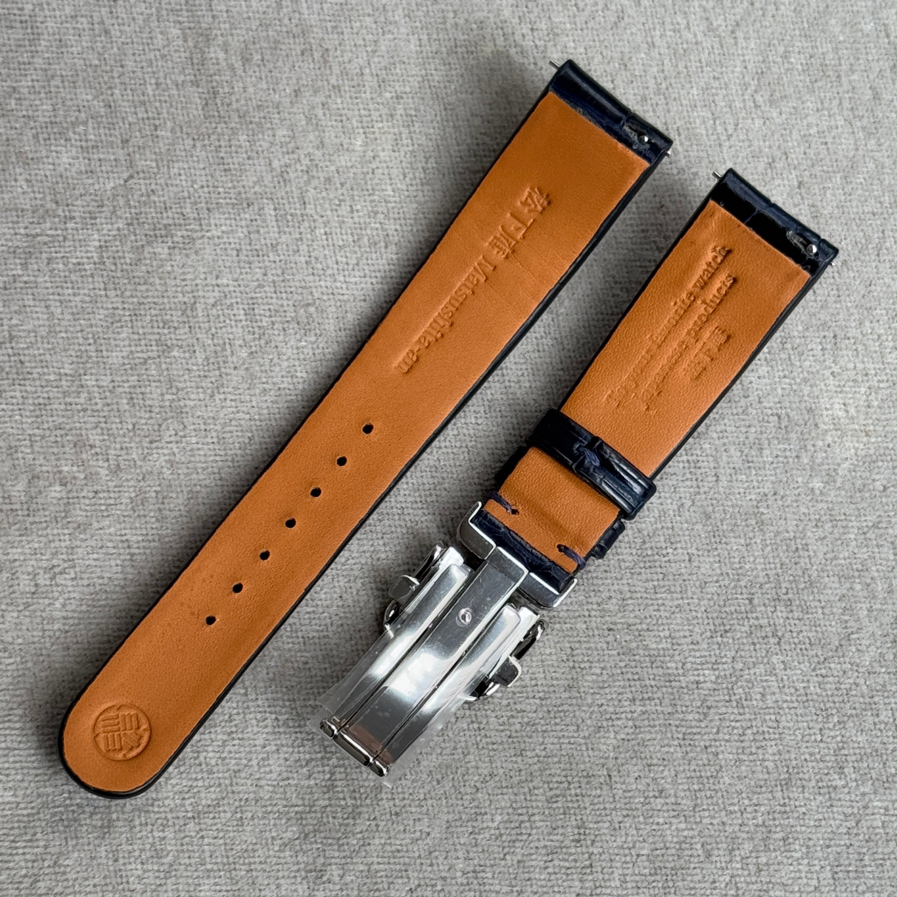 クロコダイル|藍染|片開きDバックル|19-16mm