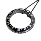 ダイバーズ時計のベゼルをモチーフにした、金属製のチャーム。素材はしっかりとしたメタル製で、手に取った瞬間に感じる重みと光沢が魅力です。