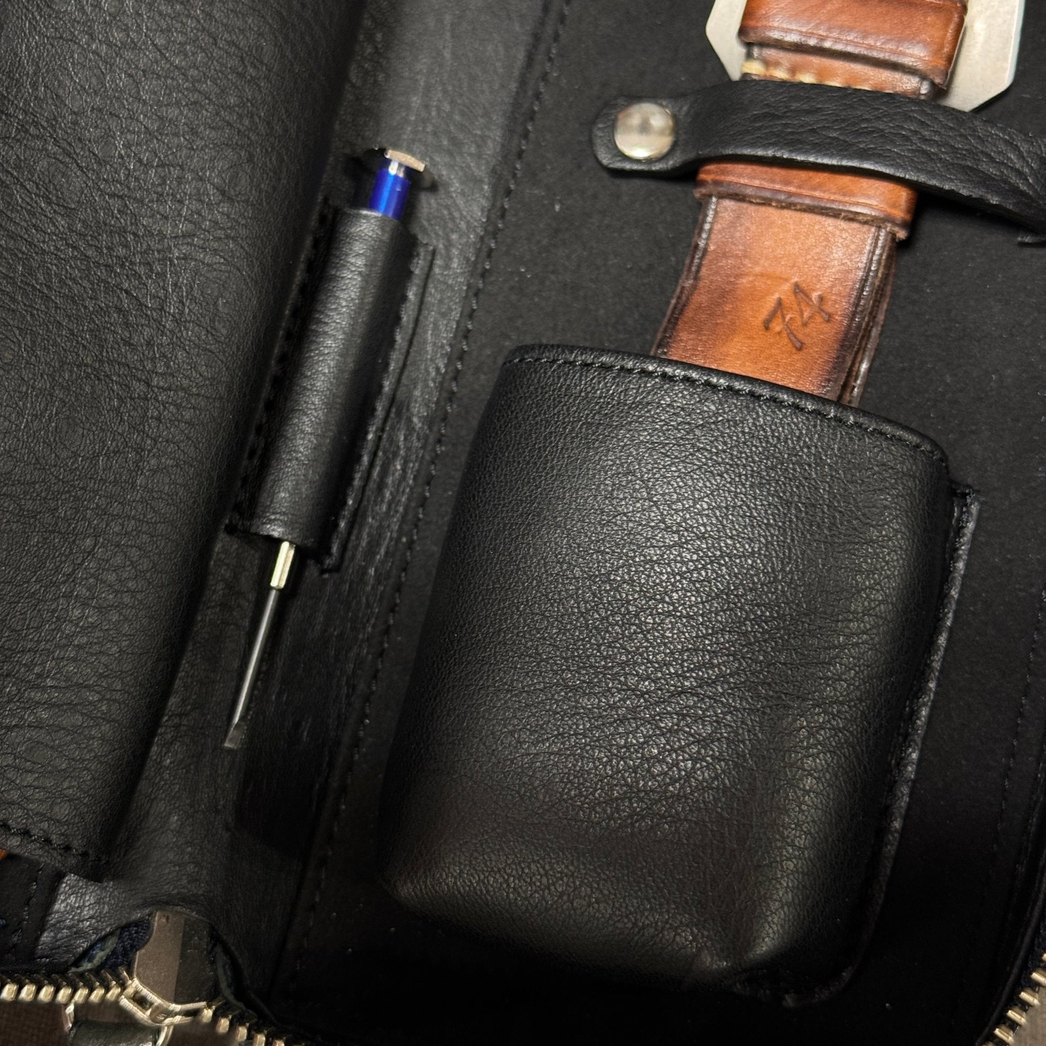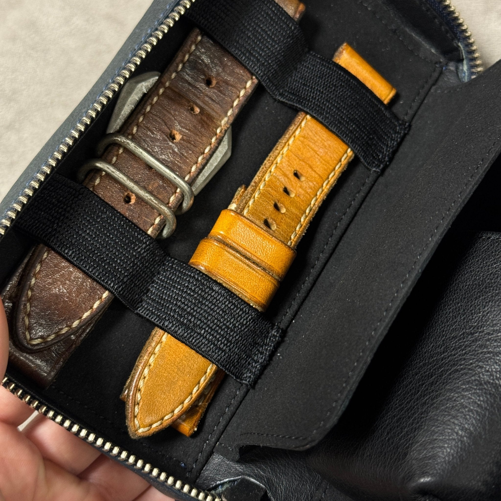 お客様のご希望に合わせて時計用のストラップをオーダーできます。素材やサイズ、ステッチ、裏材などを自由に選んで、自分だけの1本をお作りいただけます。