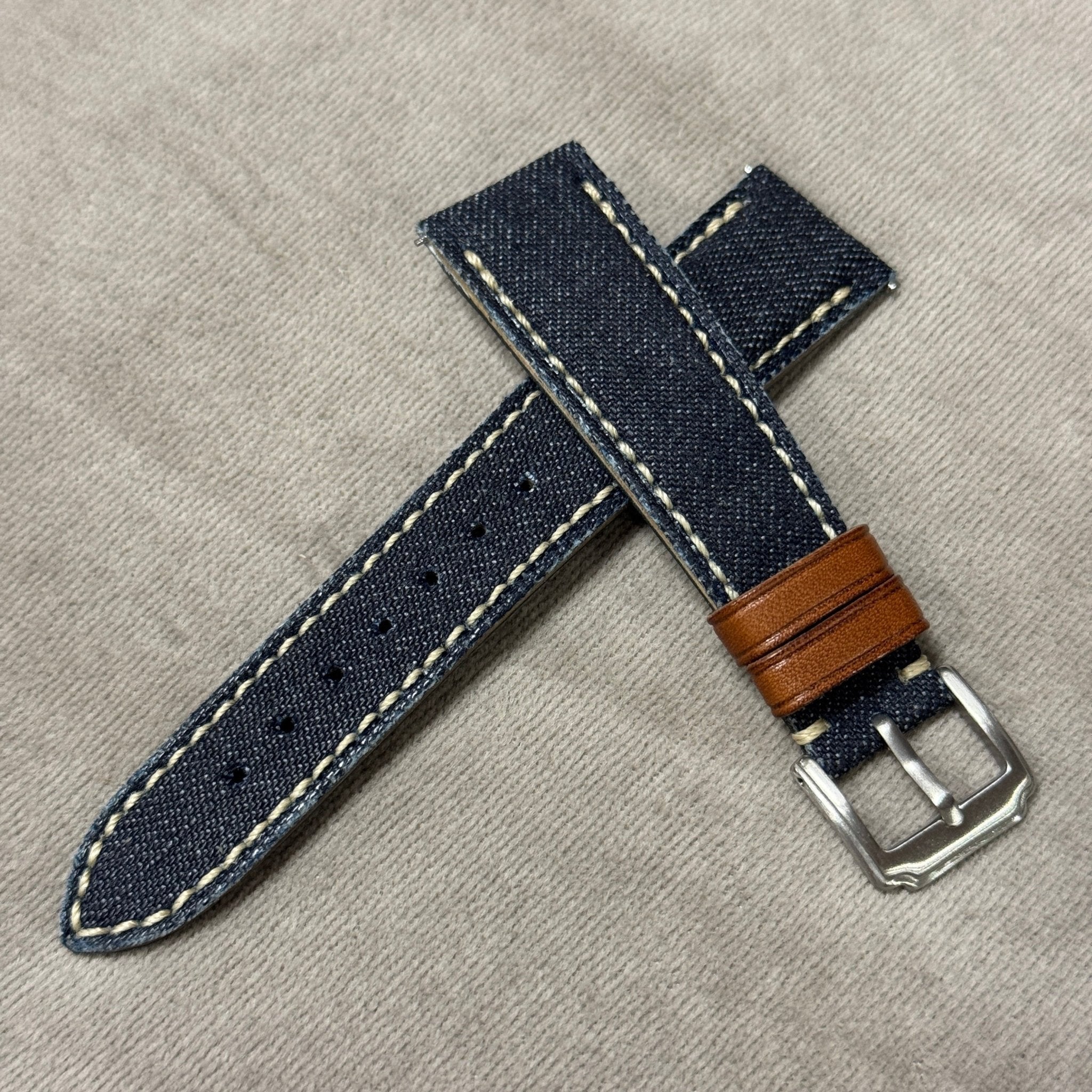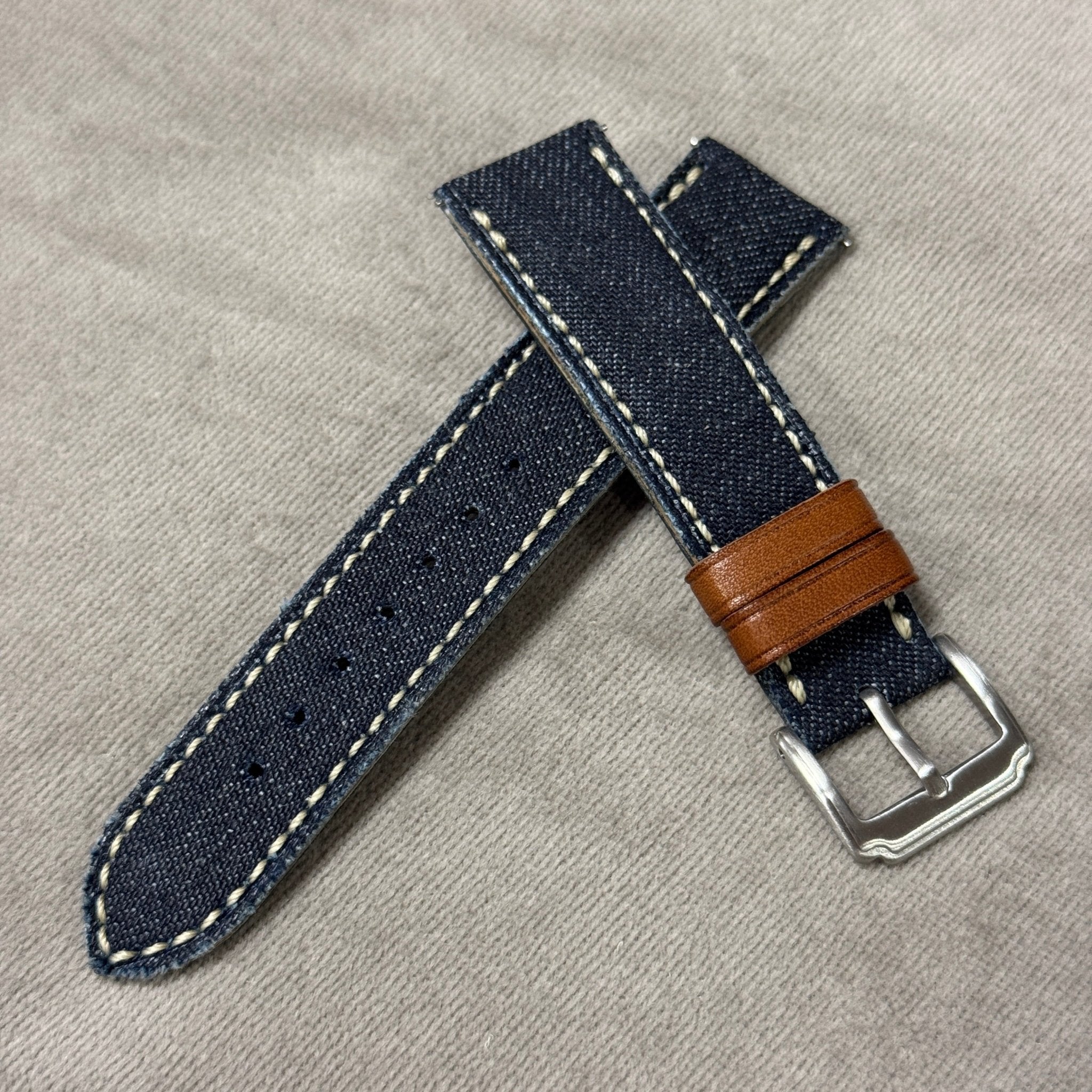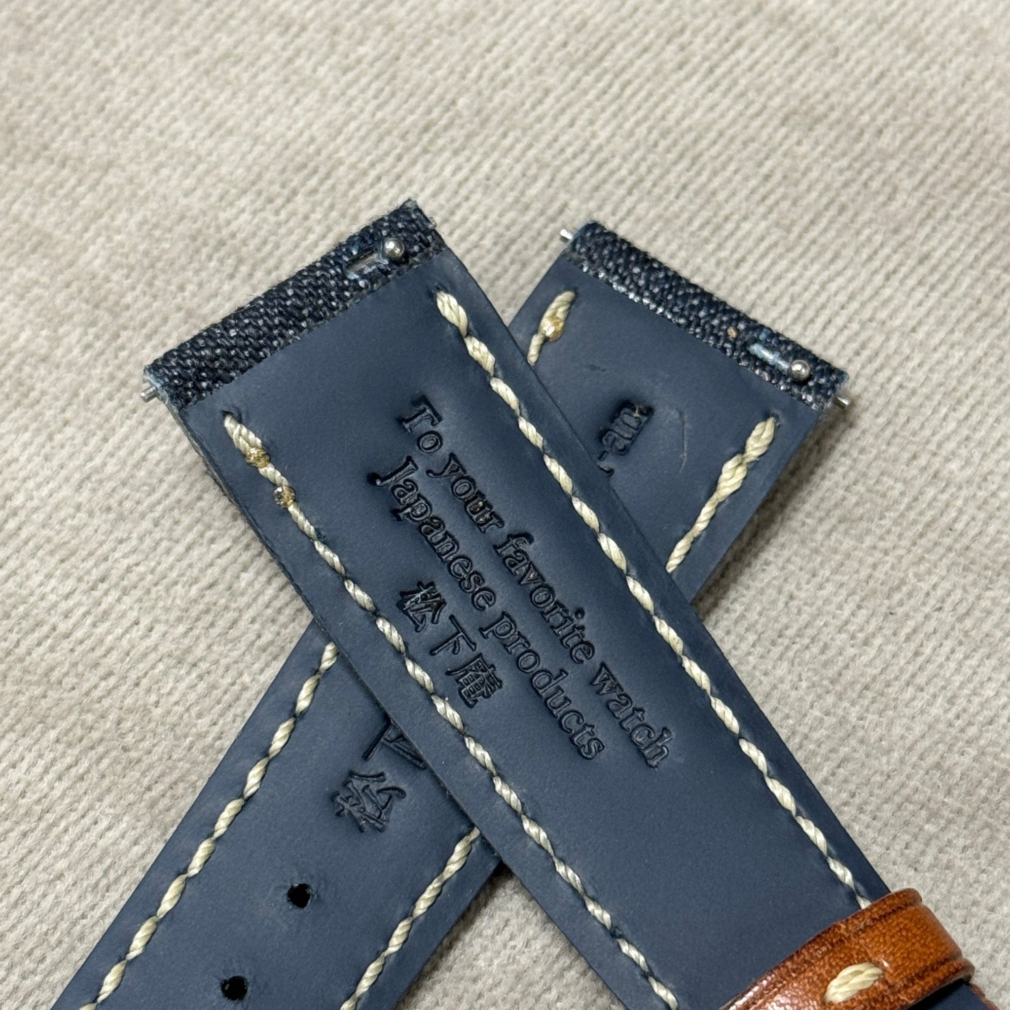 繊維の質感と色落ちの表情を楽しむ、松下庵の「デニムコレクション」。使い込むほどに柔らかく馴染み、手首に自然な風合いを添えます。