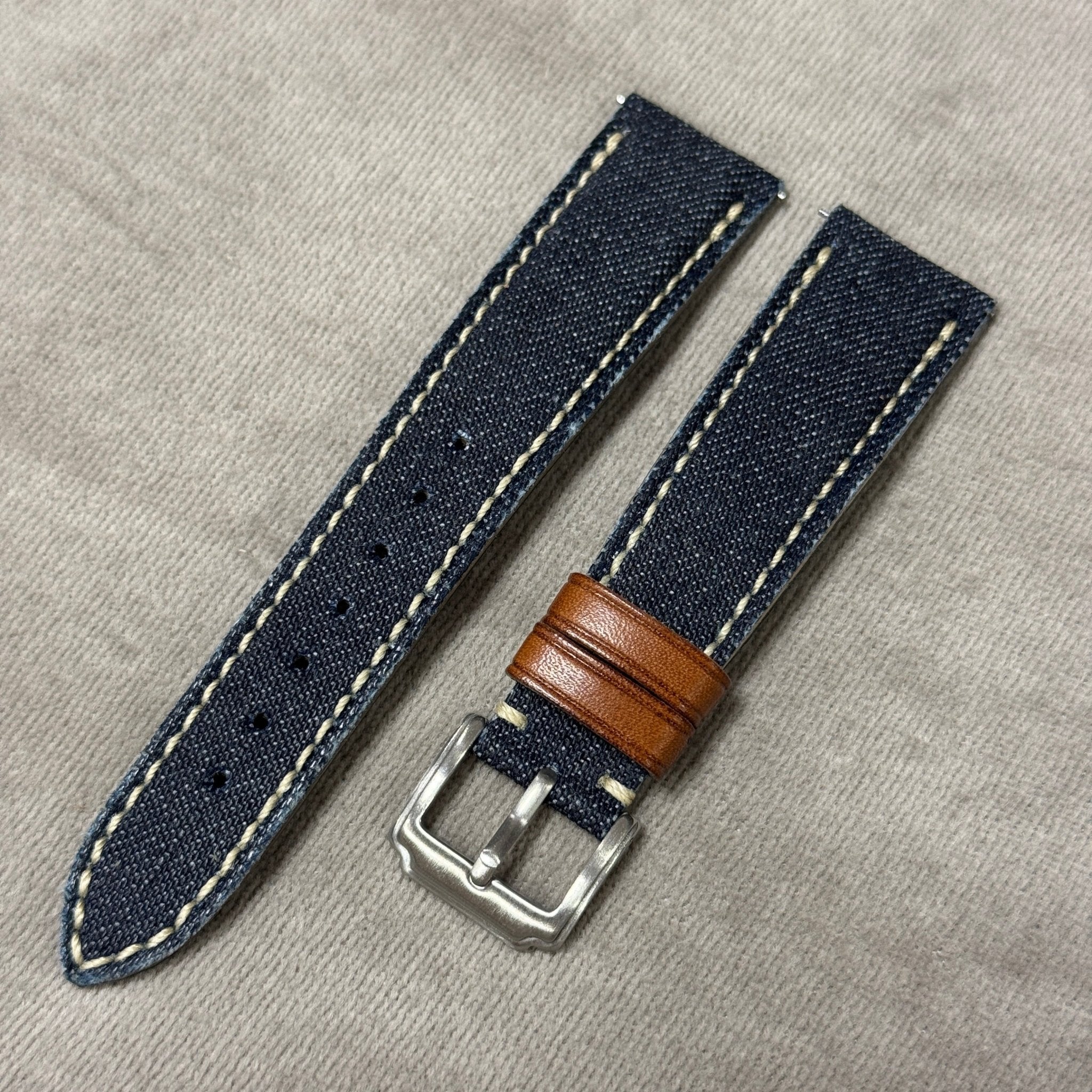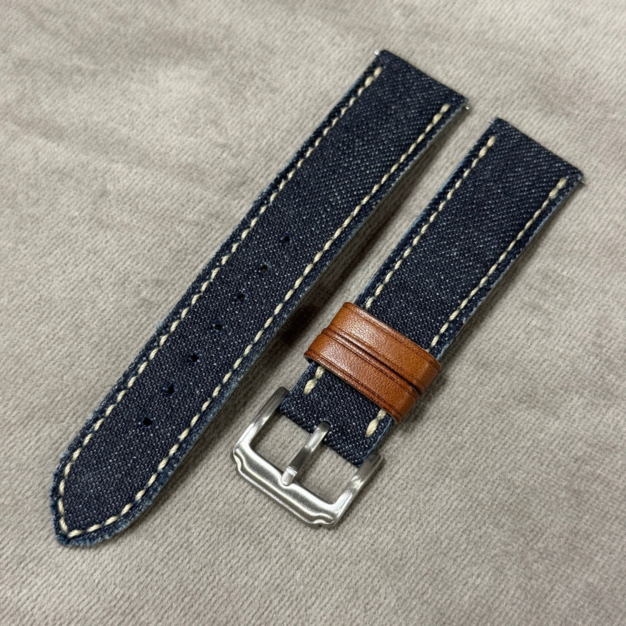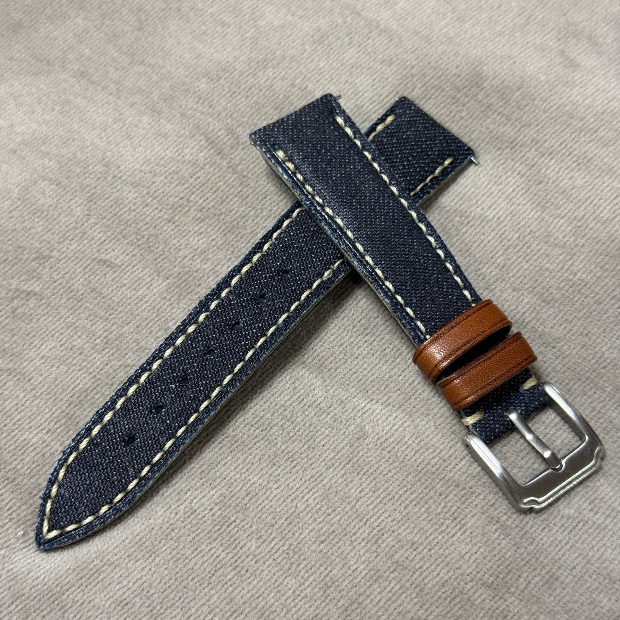 繊維の質感と色落ちの表情を楽しむ、松下庵の「デニムコレクション」。使い込むほどに柔らかく馴染み、手首に自然な風合いを添えます。
