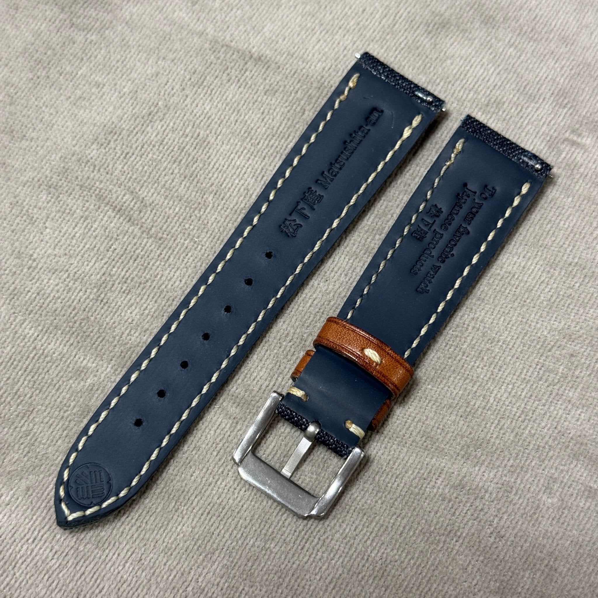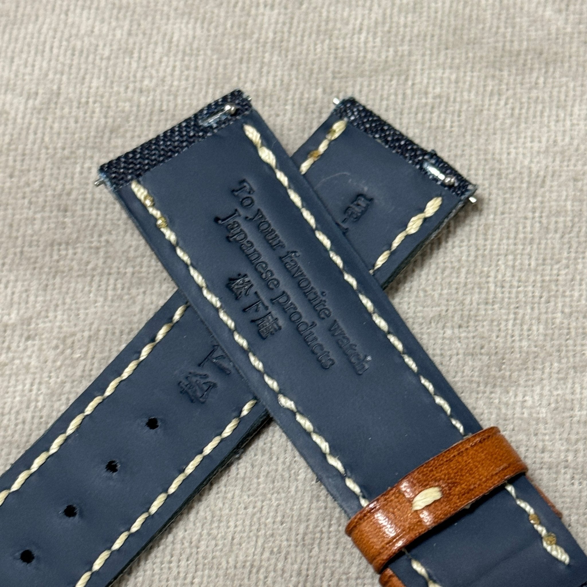 ステッチや裏材、遊定革などの組み合わせによってカジュアルにもクラシックにも変化する一本。ジーンズのように「経年変化を楽しむストラップ」として幅広いモデルに合わせてお使いいただけます。