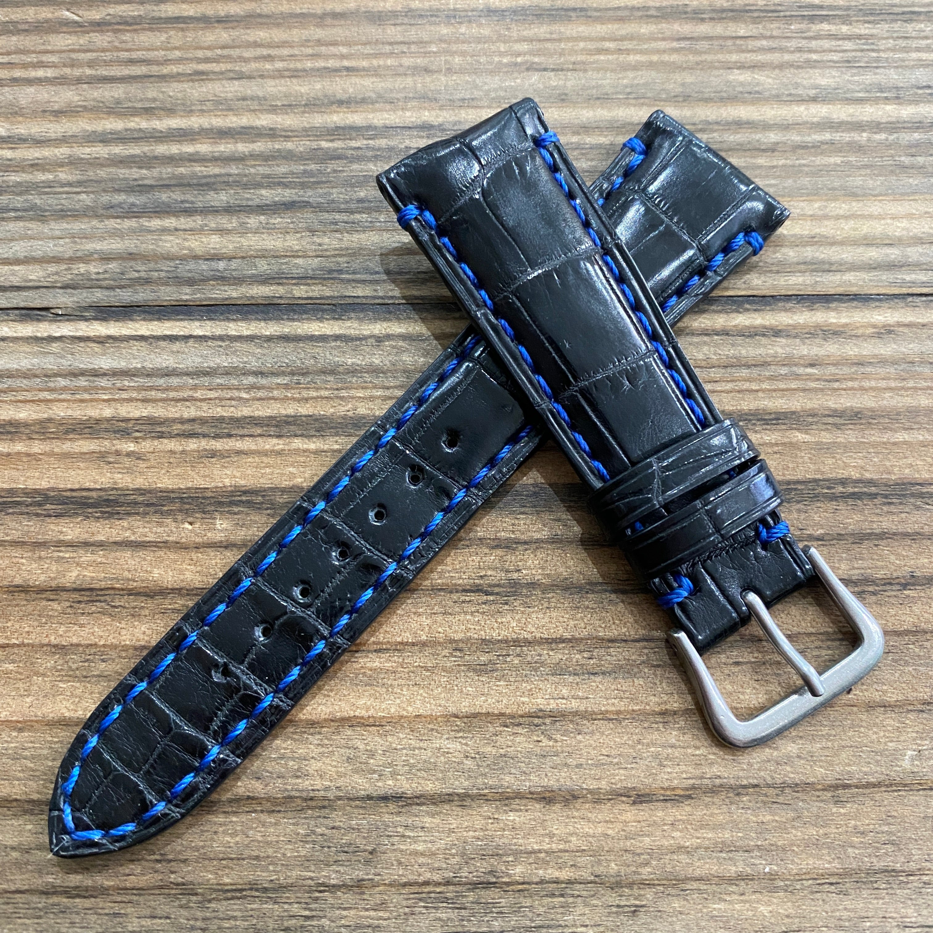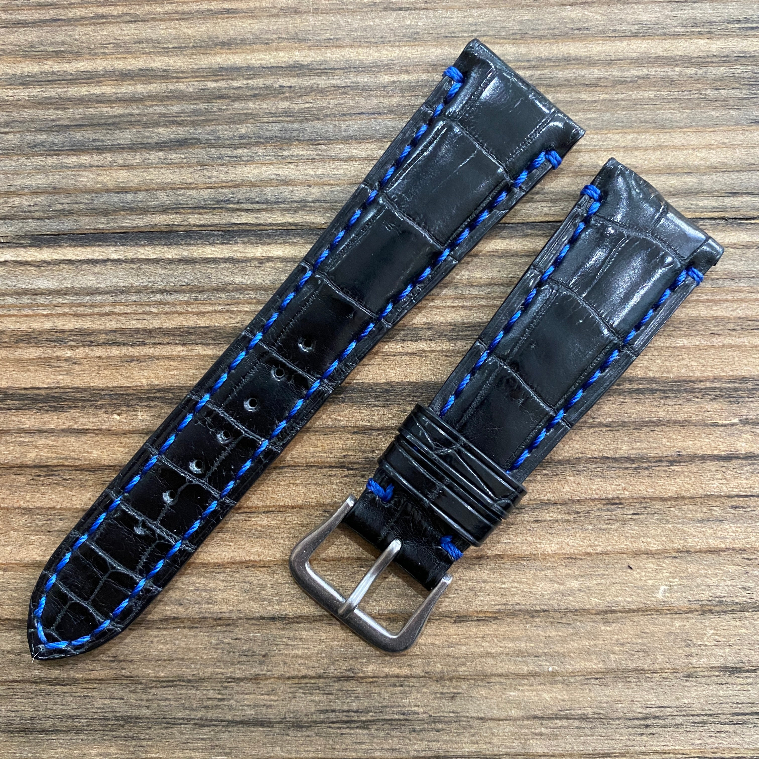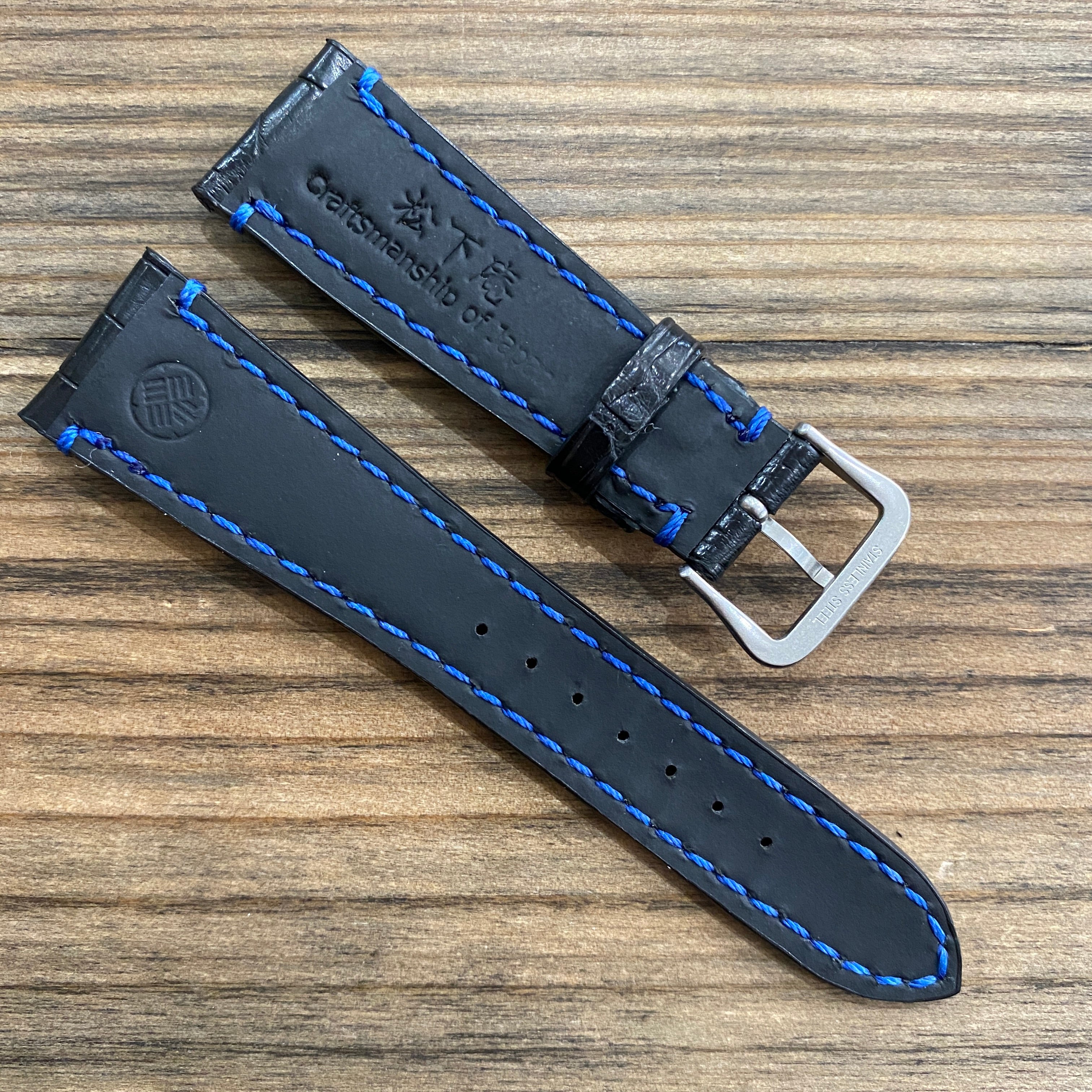 クロコダイルストラップ マットブラック 21mm ショートサイズ