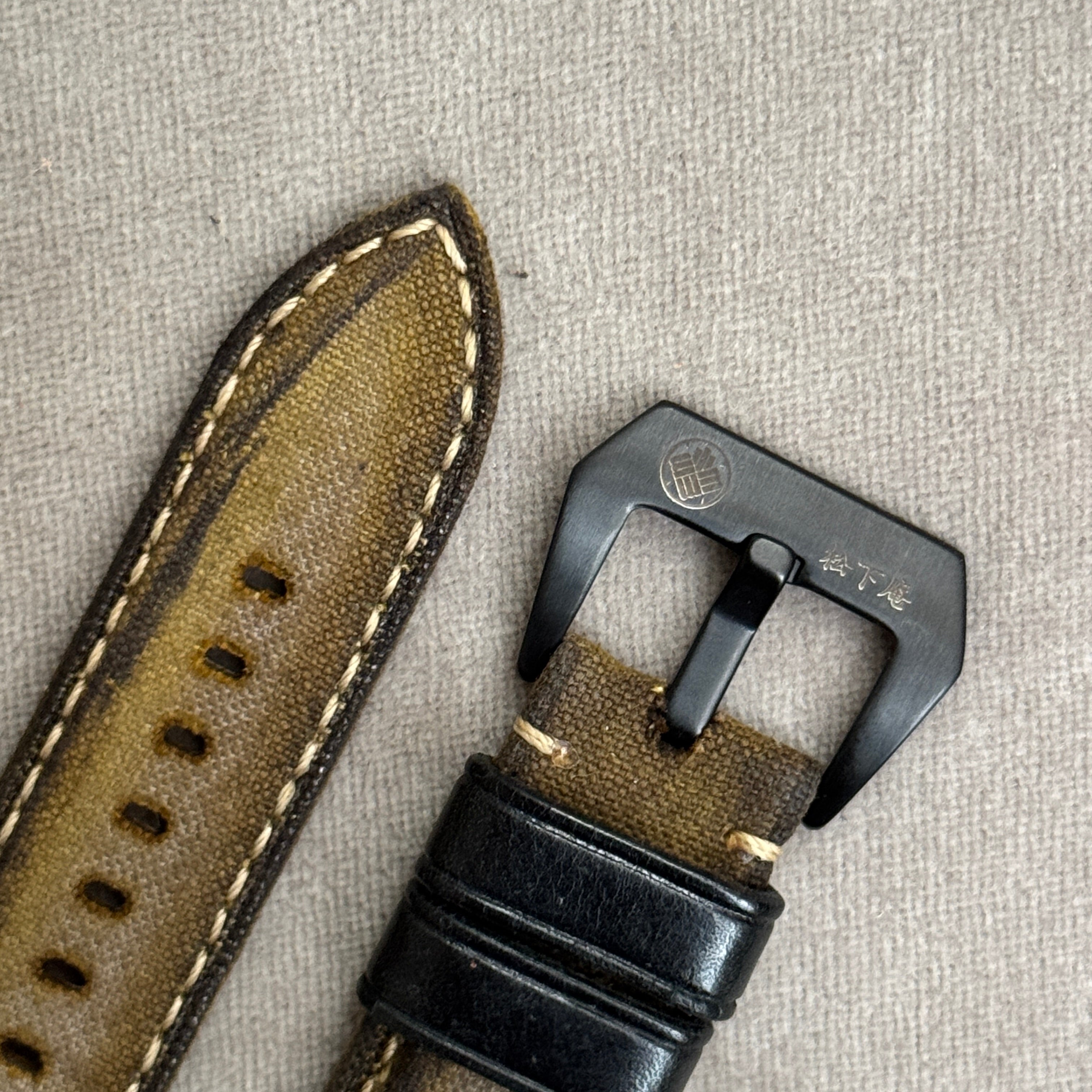 ピンバックル/ブラック フィッシュテール 松下庵刻印 バネ棒仕様(取り外し可能) 有り |