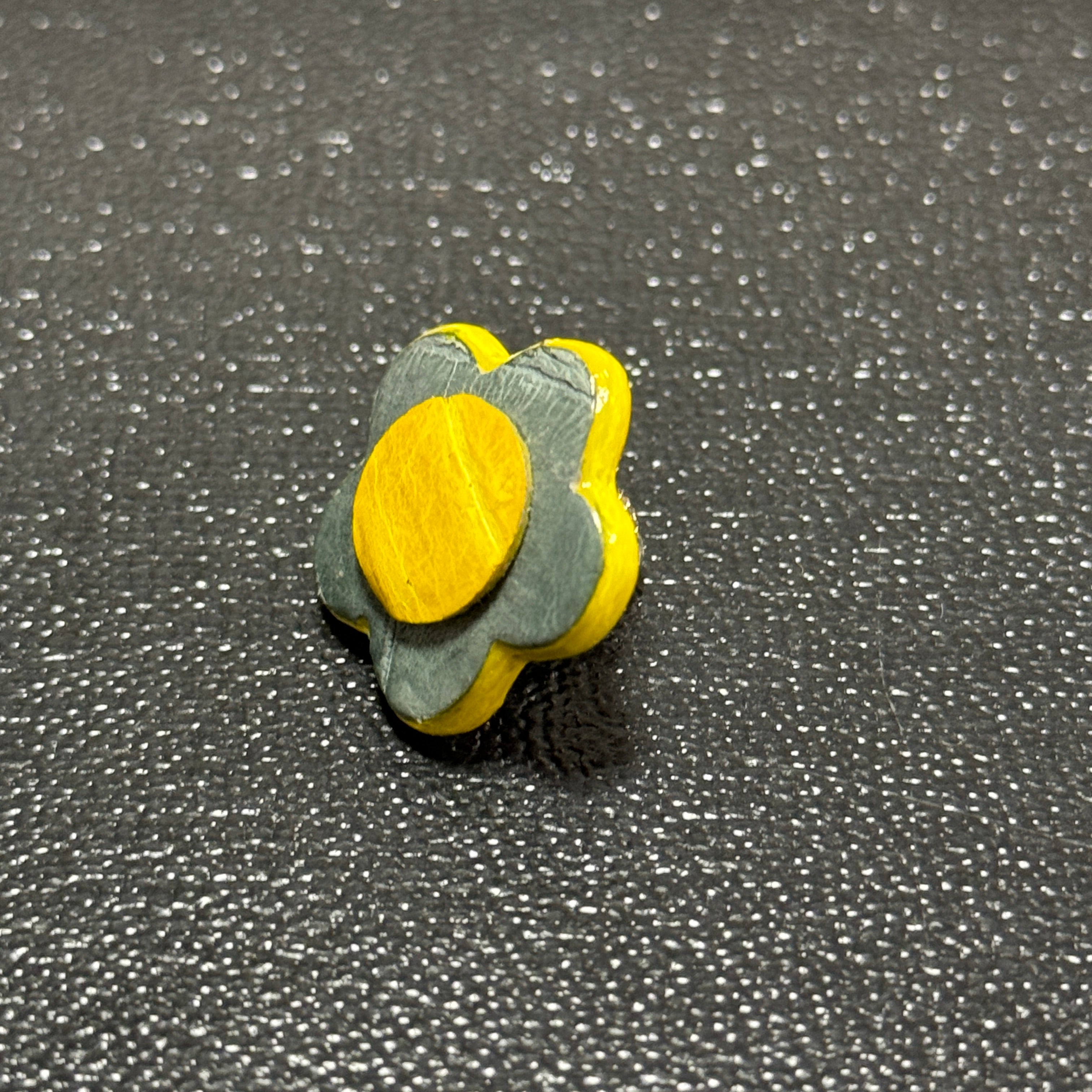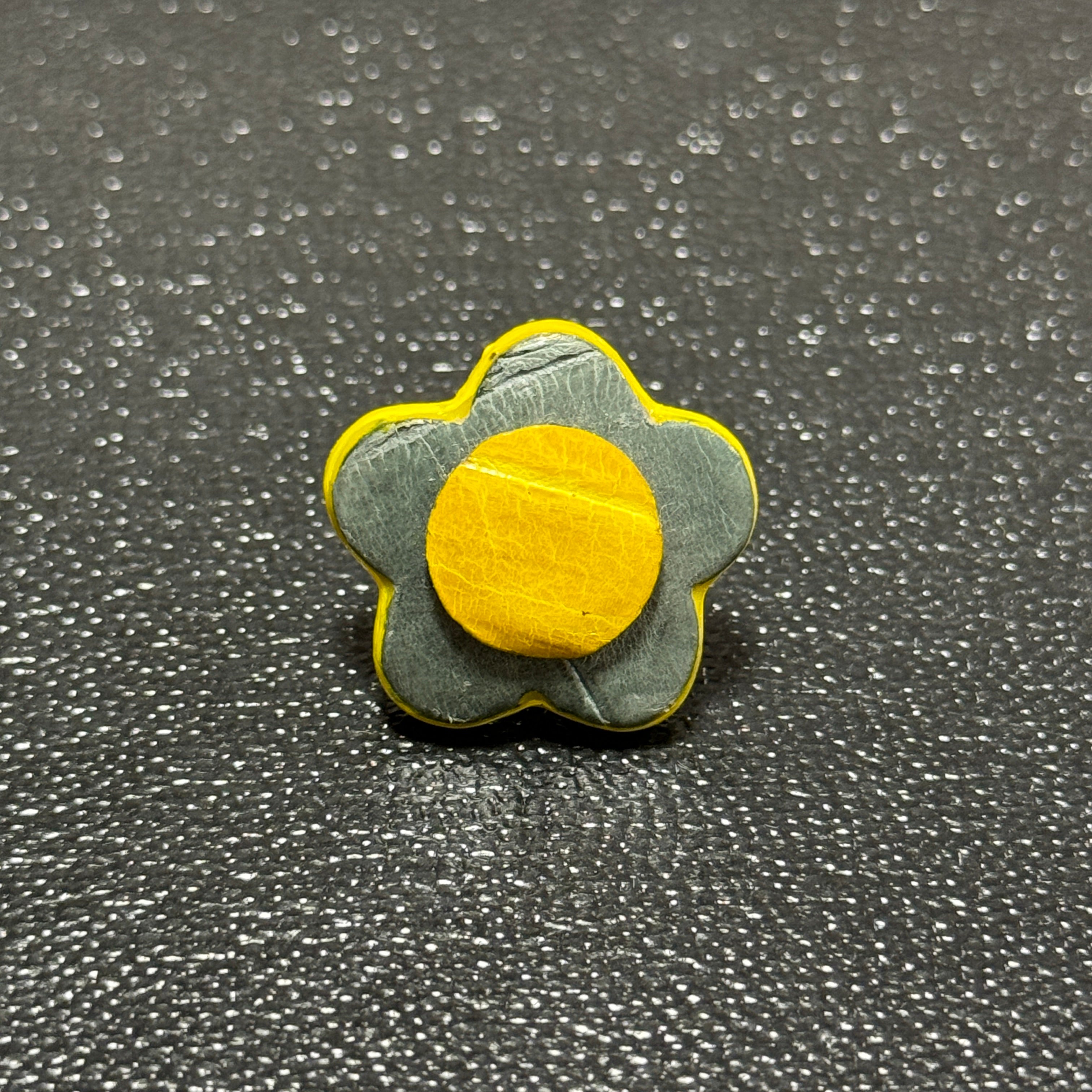 【Leather brooch】グレー&イエロー