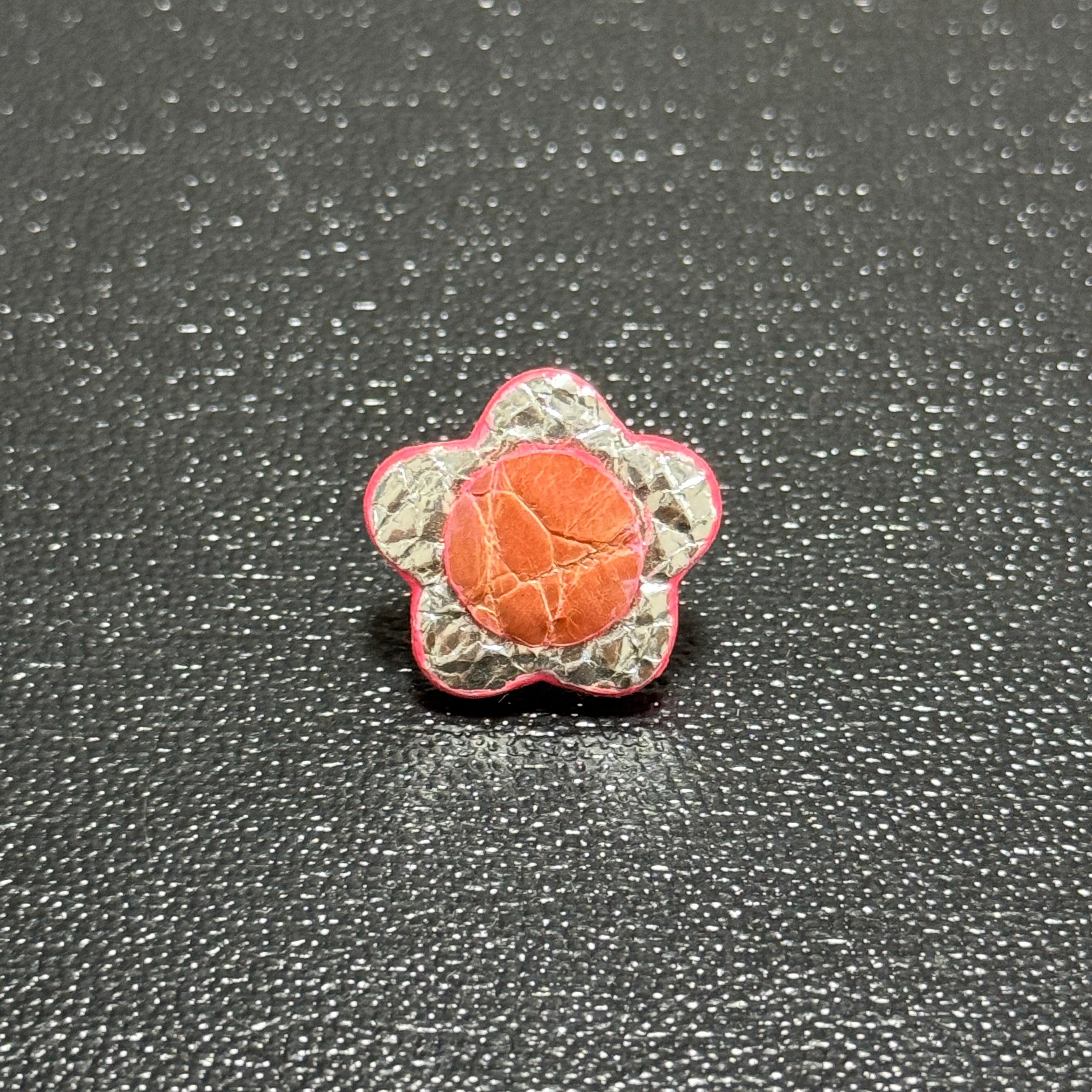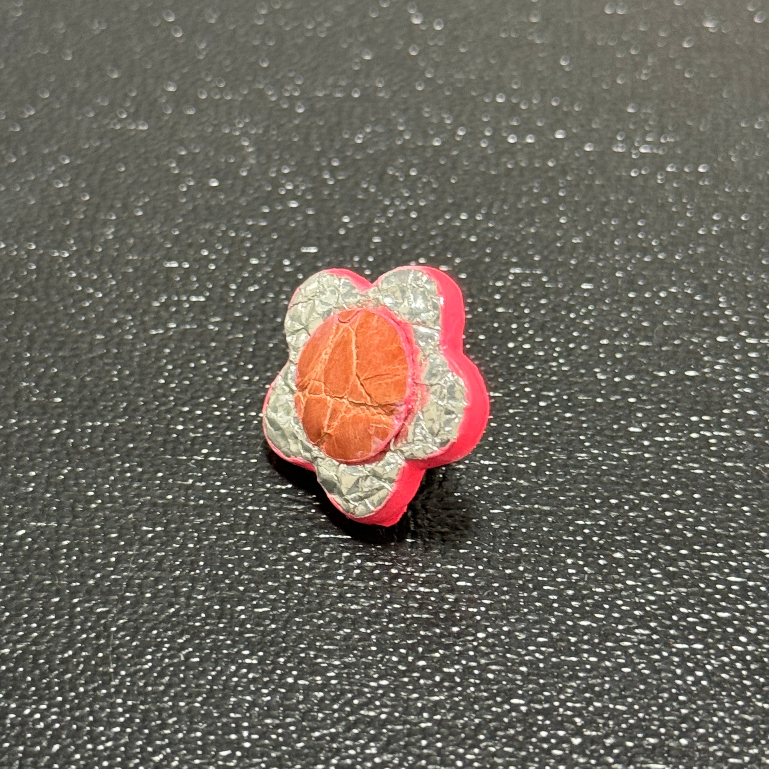 【Leather brooch】シルバー&ピンク