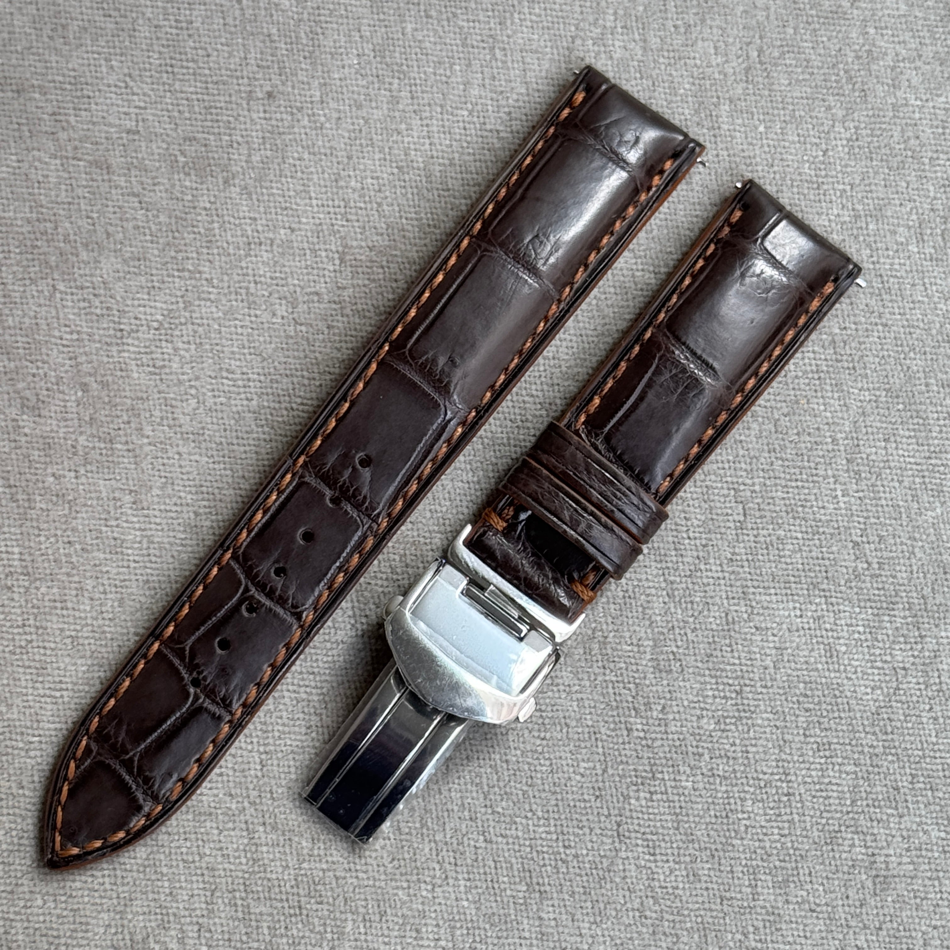 クロコダイル|マットチャコールブラウン|片開きDバックル|20-18mm