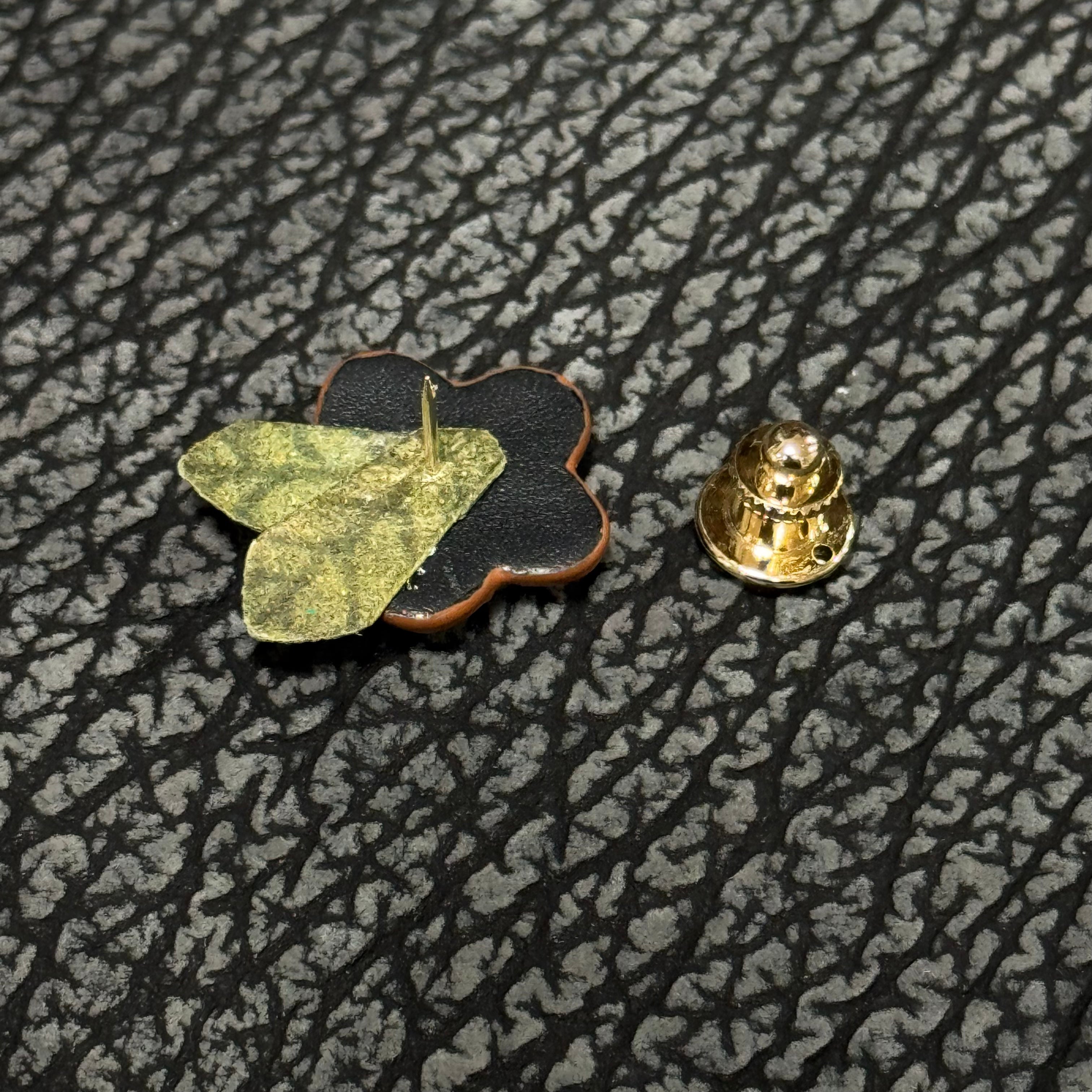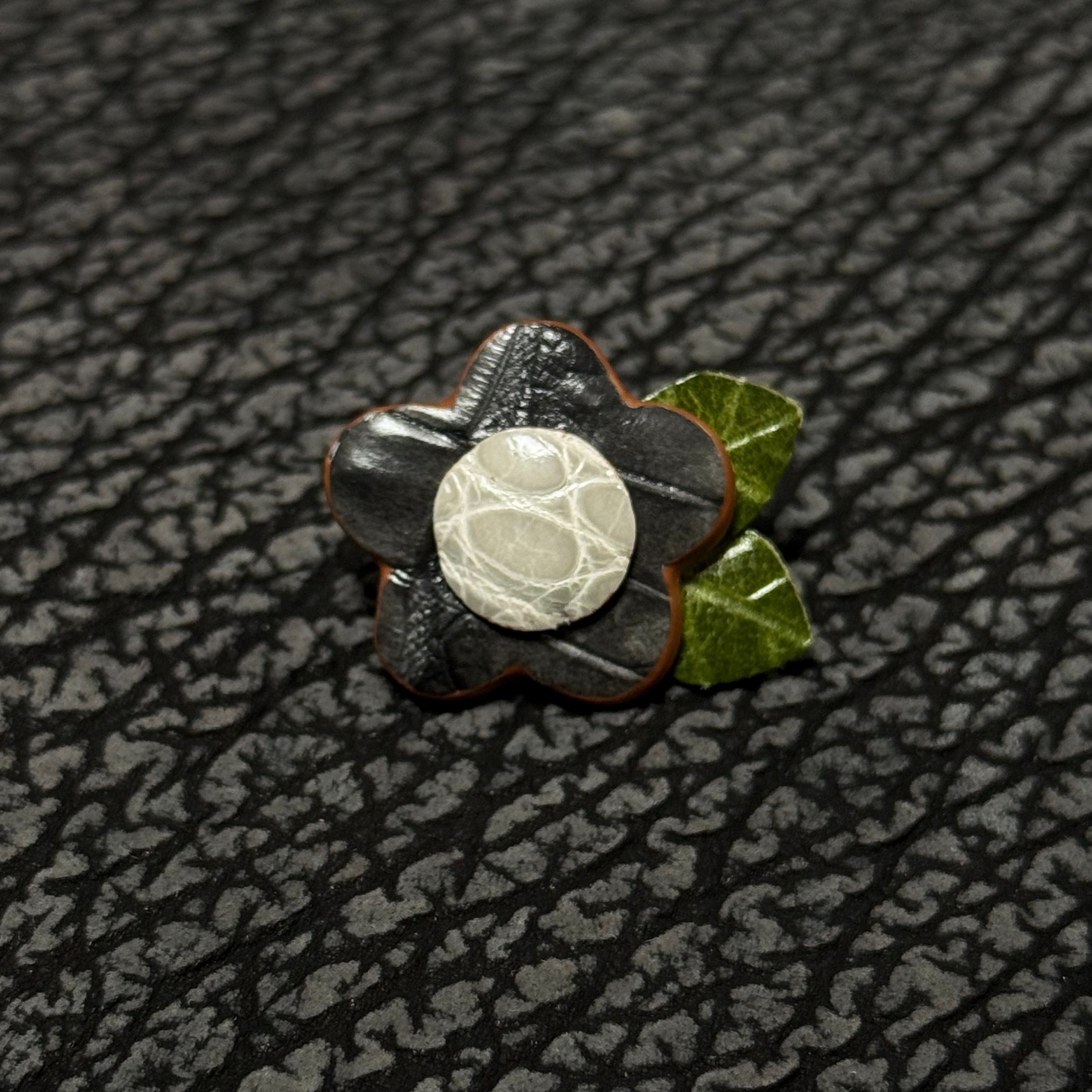 レザーブローチ 純花/すみれ|墨染&ライトグレー
